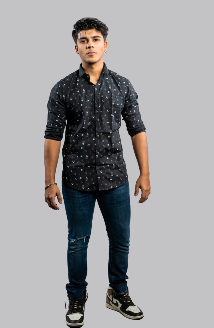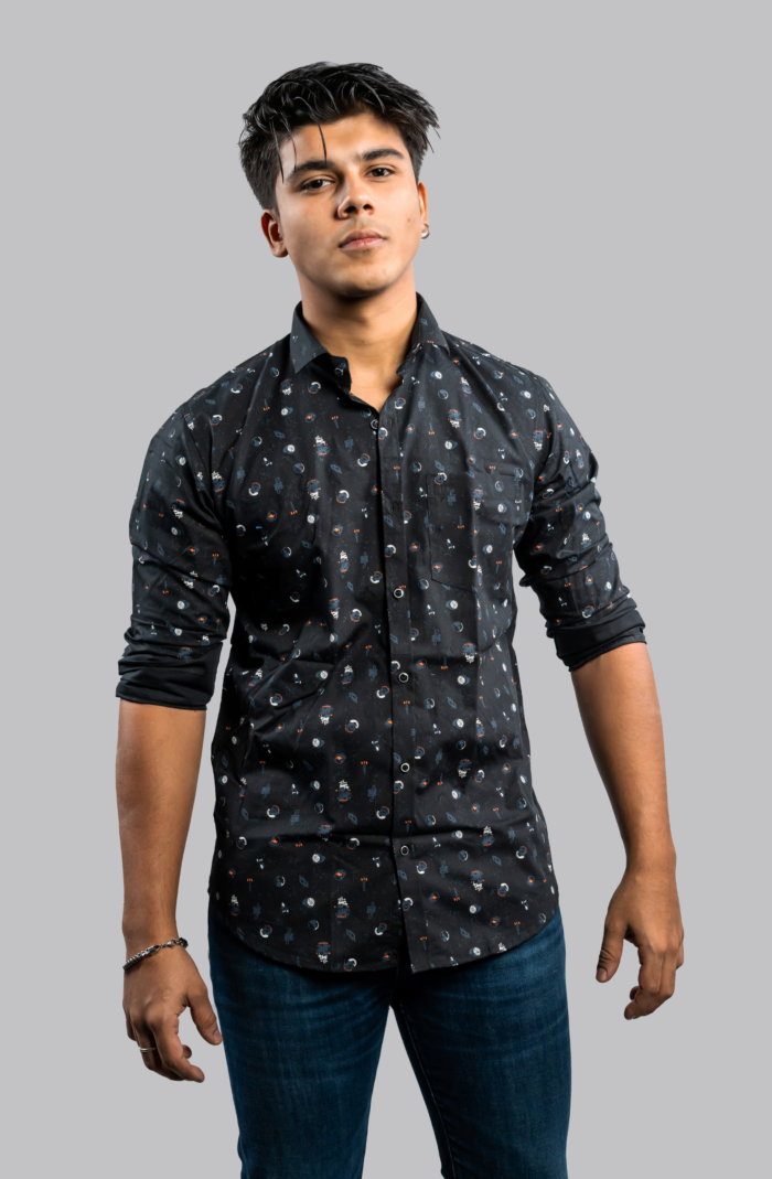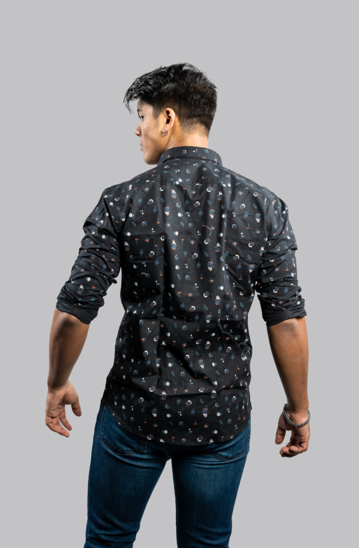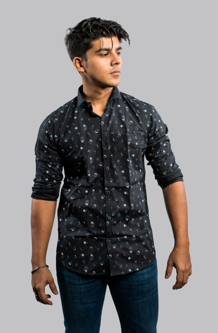 Home Men Casual Shirts Black Shirt With Skull Print Full Sleeved